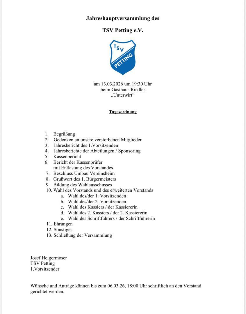 lnfo@tsv–petting.de erfahren Sie mehr.